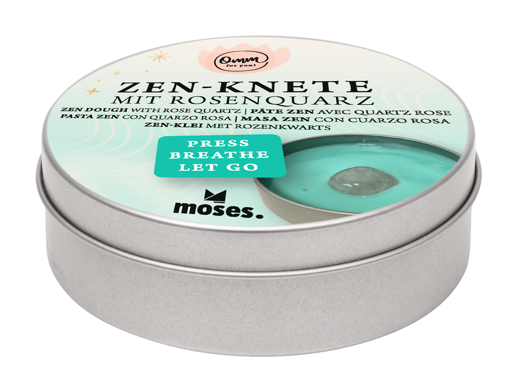 Die weiche Zen-Knete bietet eine einfache Möglichkeit, den Kopf freizubekommen und den Moment bewusst zu erleben. Der beiliegende Rosenquarz ergänzt das sensorische Erlebnis um einen symbolischen Impuls – für Ausgleich, Konzentration und innere Stärke im Alltag.