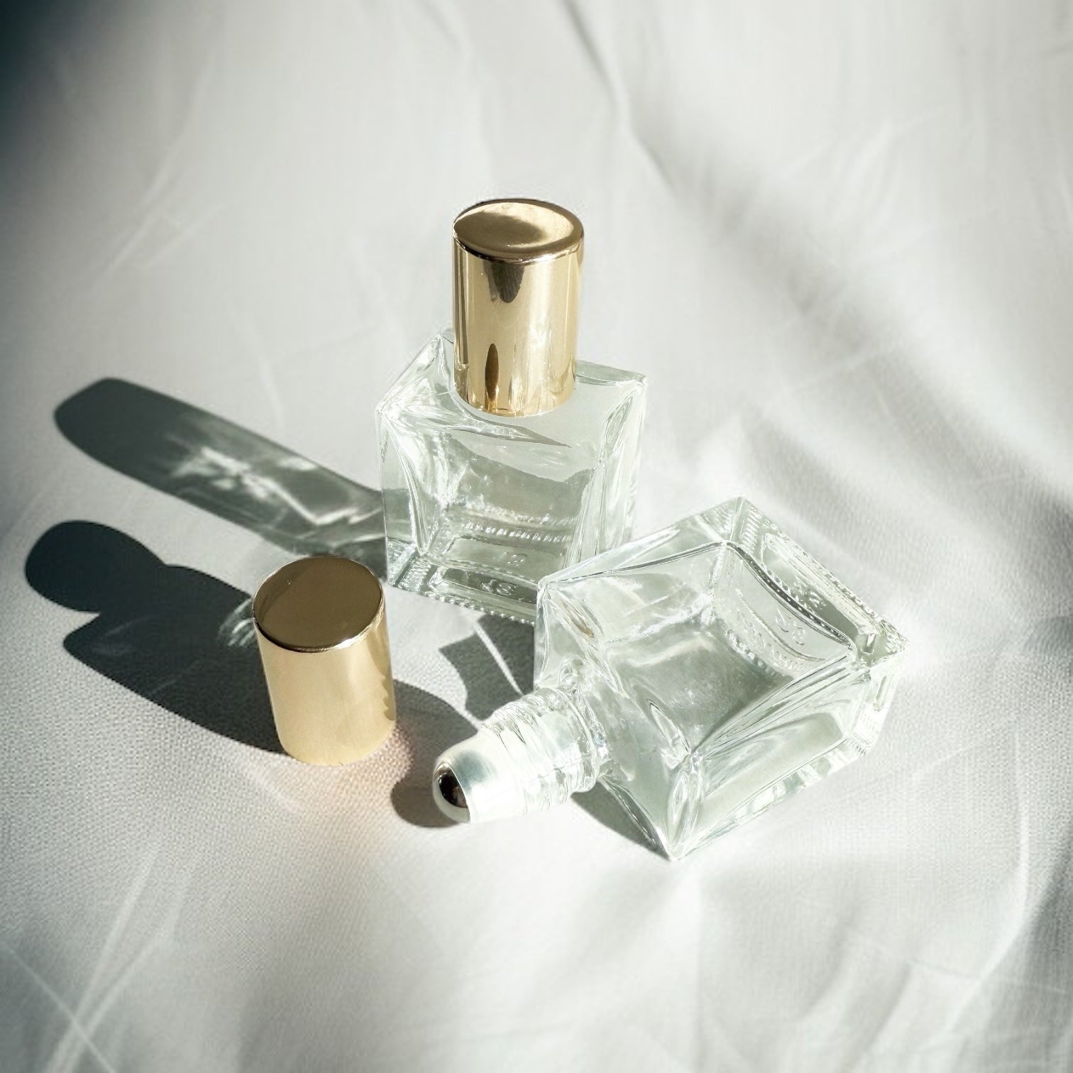 Der kleine, quadratische Parfümroller mit seiner edlen goldenen Kappe bewahrt 10 ml deiner persönlichen Duftmischung. Ein stiller Begleiter für unterwegs, der nicht vorgibt, wer du sein sollst – sondern Raum schafft für das, was du fühlen möchtest.