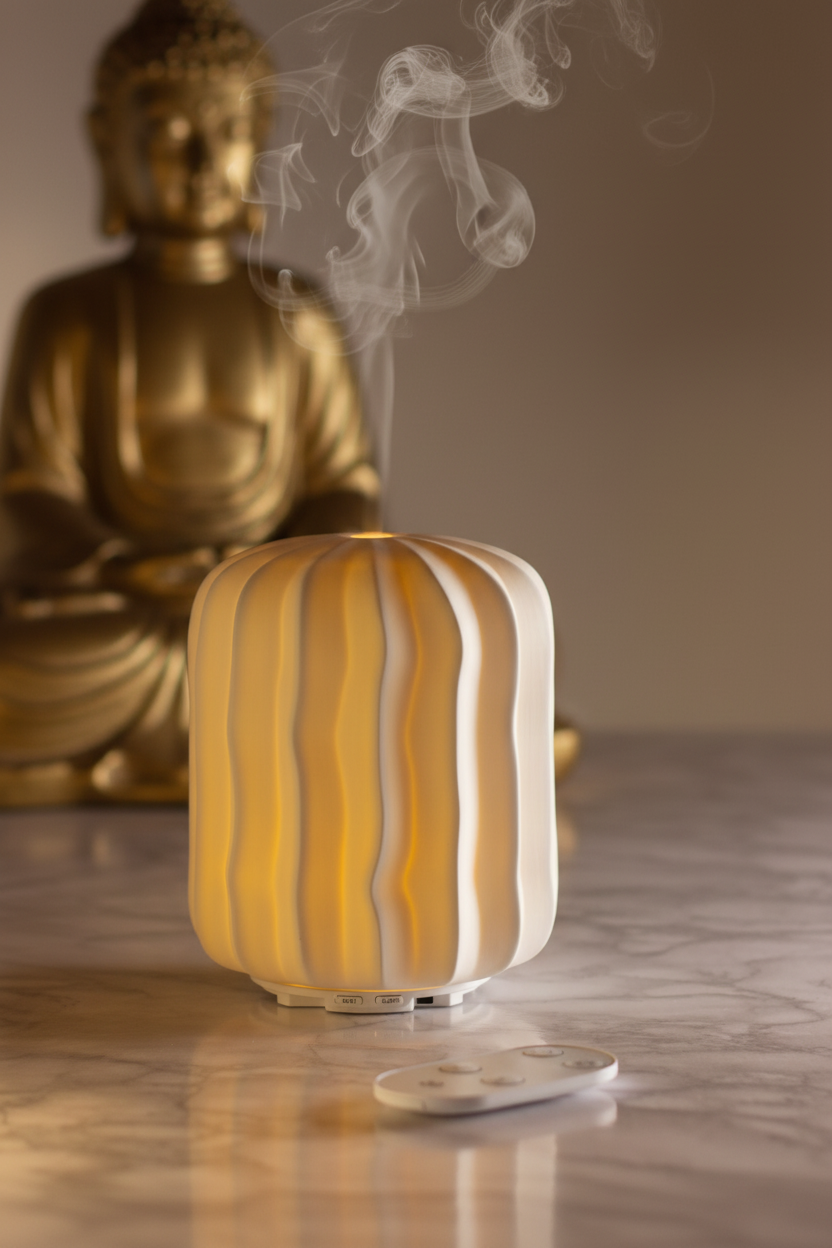 Der Lina Aroma Diffuser verbindet aromatischen Feinnebel mit einem außergewöhnlich schönen Design. Die skulpturale Keramik-Abdeckung ist von organischen Meeresformen inspiriert und fühlt sich zugleich modern, ruhig und naturverbunden an. Das weiche Licht untermalt die Duftverteilung dezent – so entsteht eine warme, entspannende Atmosphäre in jedem Raum.