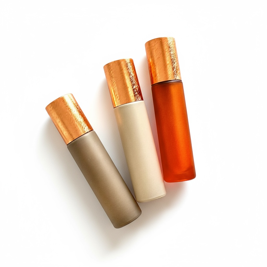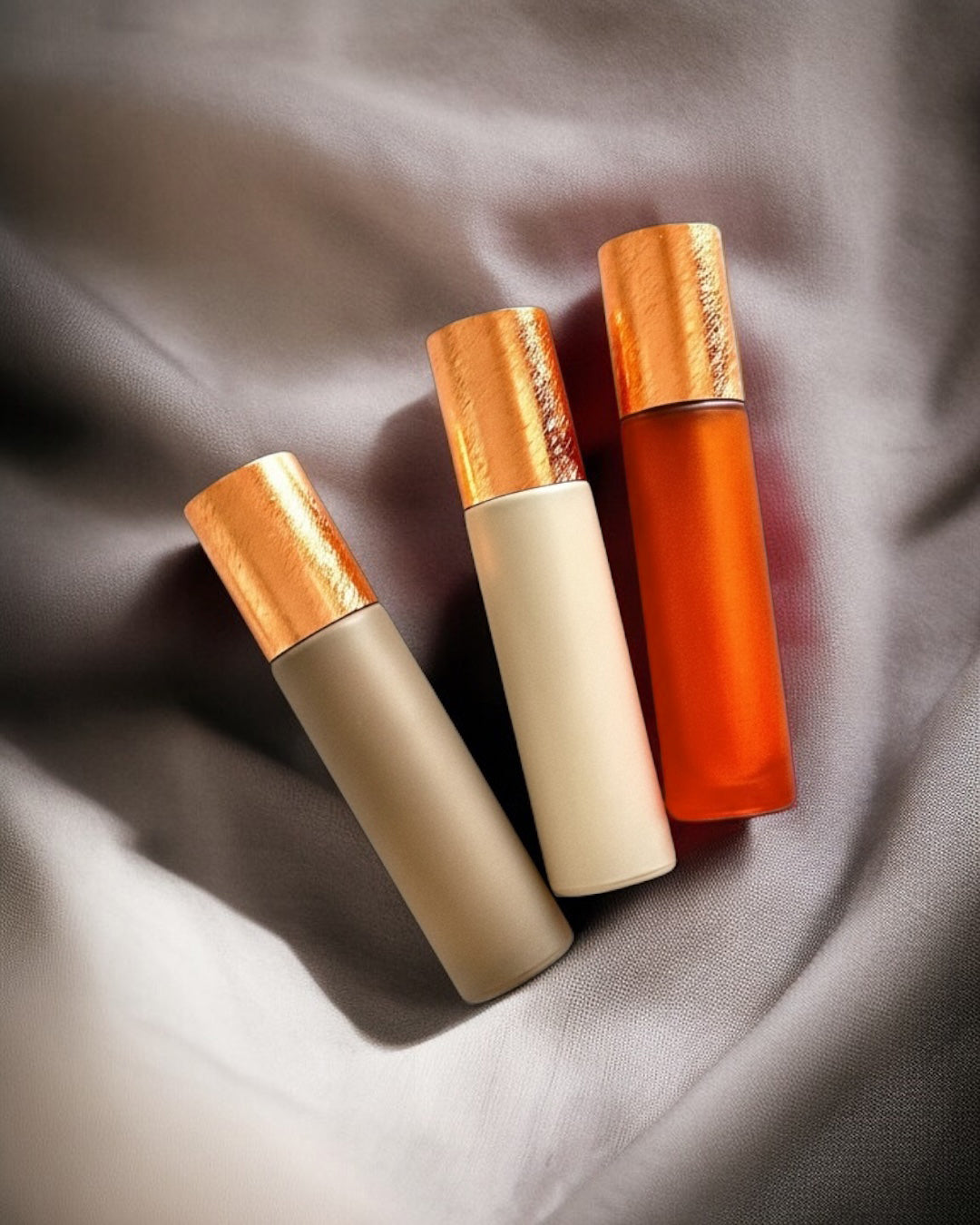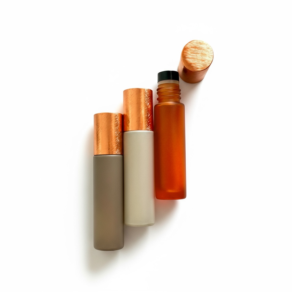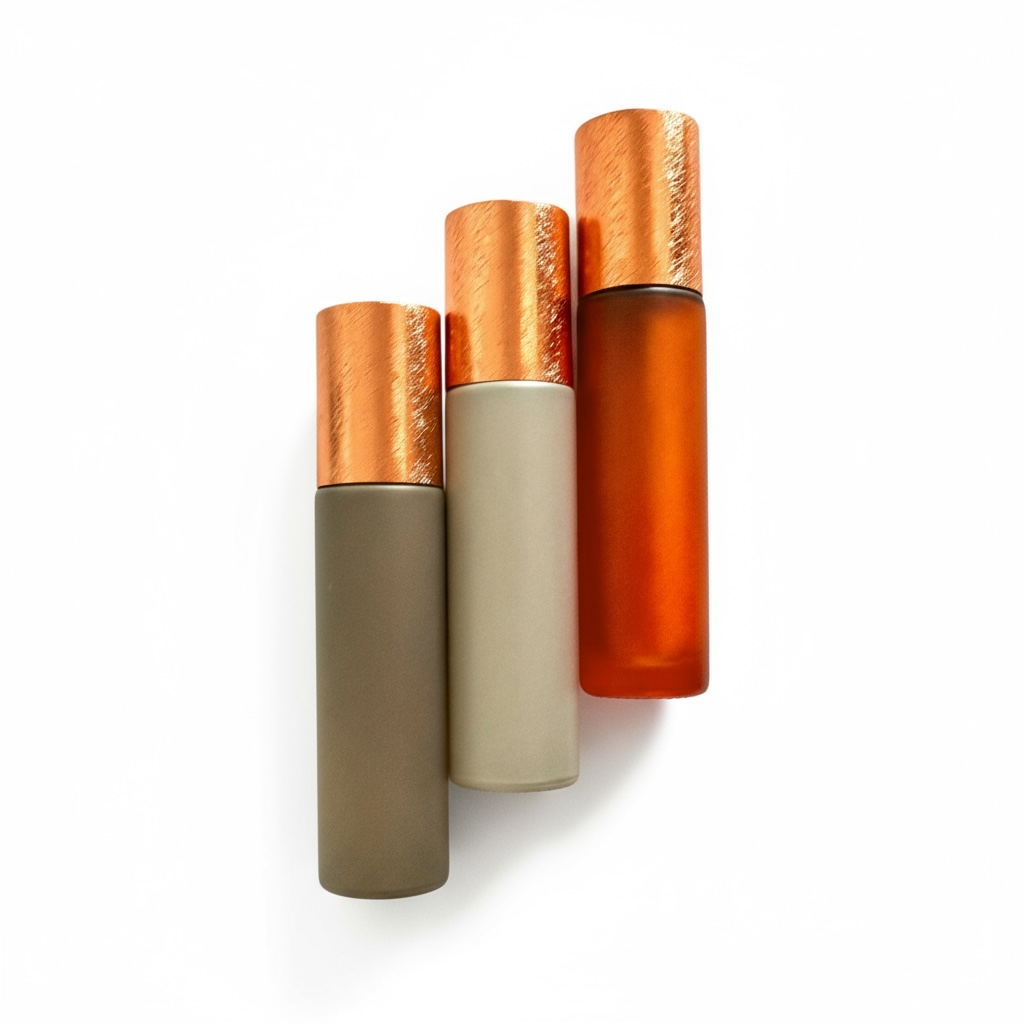 Die eleganten Roll On-Flaschen aus satiniertem und farbigem Glas glänzen mit gebürsteten Metallic-Kappen in Copper sowie Premium-Edelstahlrollern. Sie sind perfekt zum Auftragen ätherischer Öle und Ölmischungen - für zu Hause und praktisch auch für unterwegs, da die Roll Ons in jeder Handtasche Platz finden. Auch ideal als Präsent oder Mitbringsel, um lieben Menschen eine Freude zu bereiten oder einfach einen helfenden Alltagsbegleiter zu schenken.