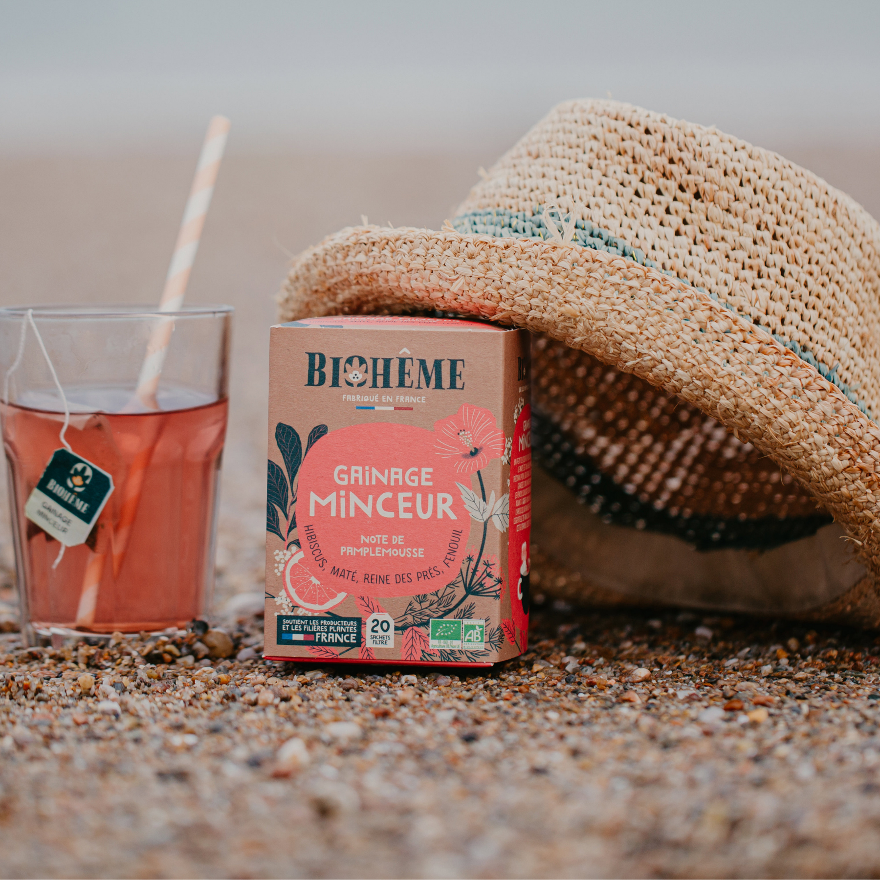 Jede Sorte wird mit Liebe in Frankreich hergestellt, mit Zutaten aus nachhaltigem Anbau und kurzen Lieferwegen. Dabei achtet Biohême auf jedes Detail – vom Anbau bis zur Verpackung: Die Teebeutel sind plastikfrei, einzeln versiegelt in einer kompostierbaren Zellulosefolie aus Holzfasern, die sich in nur wenigen Wochen vollständig zersetzt.