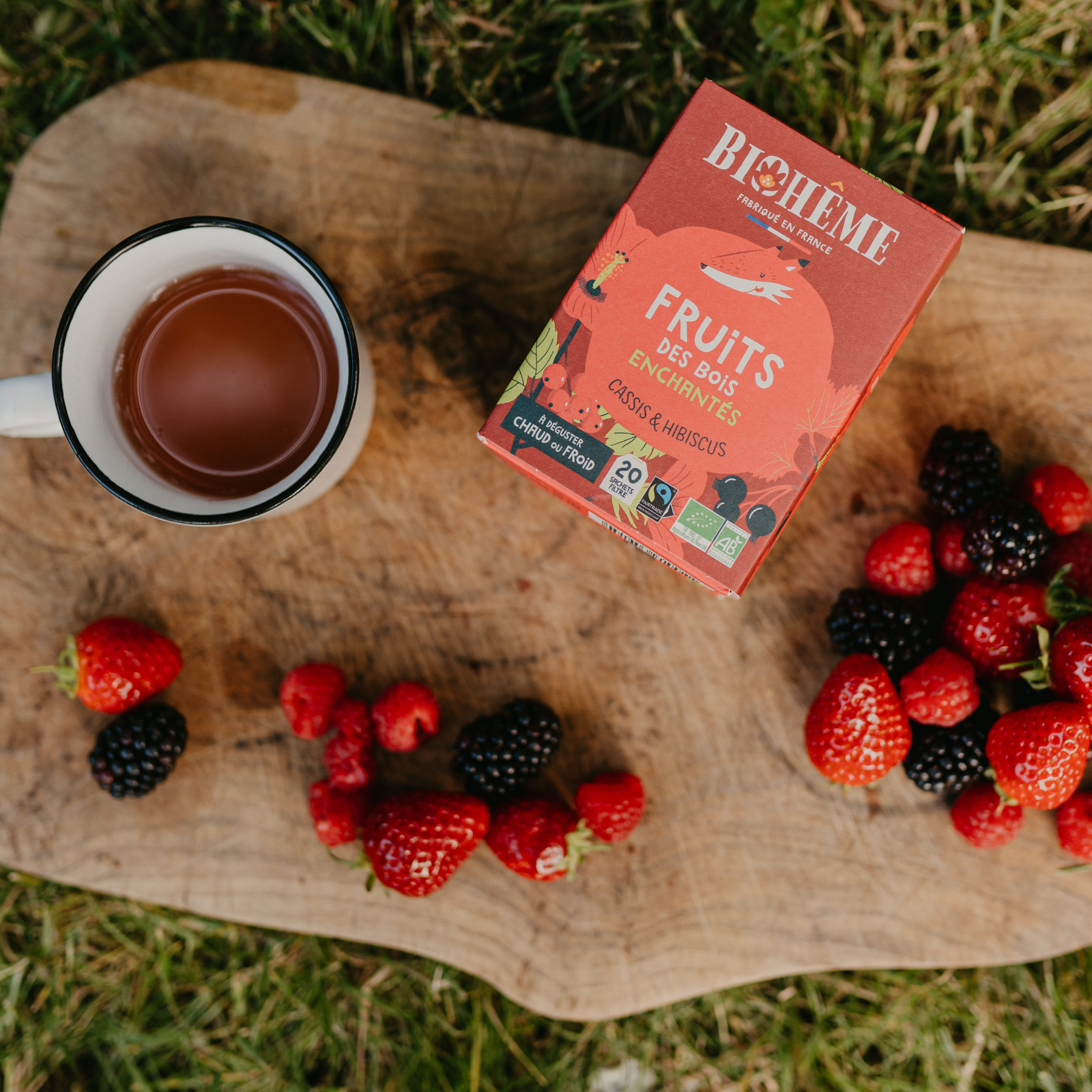 Jede Sorte wird mit Liebe in Frankreich hergestellt, mit Zutaten aus nachhaltigem Anbau und kurzen Lieferwegen. Dabei achtet Biohême auf jedes Detail – vom Anbau bis zur Verpackung: Die Teebeutel sind plastikfrei, einzeln versiegelt in einer kompostierbaren Zellulosefolie aus Holzfasern, die sich in nur wenigen Wochen vollständig zersetzt.