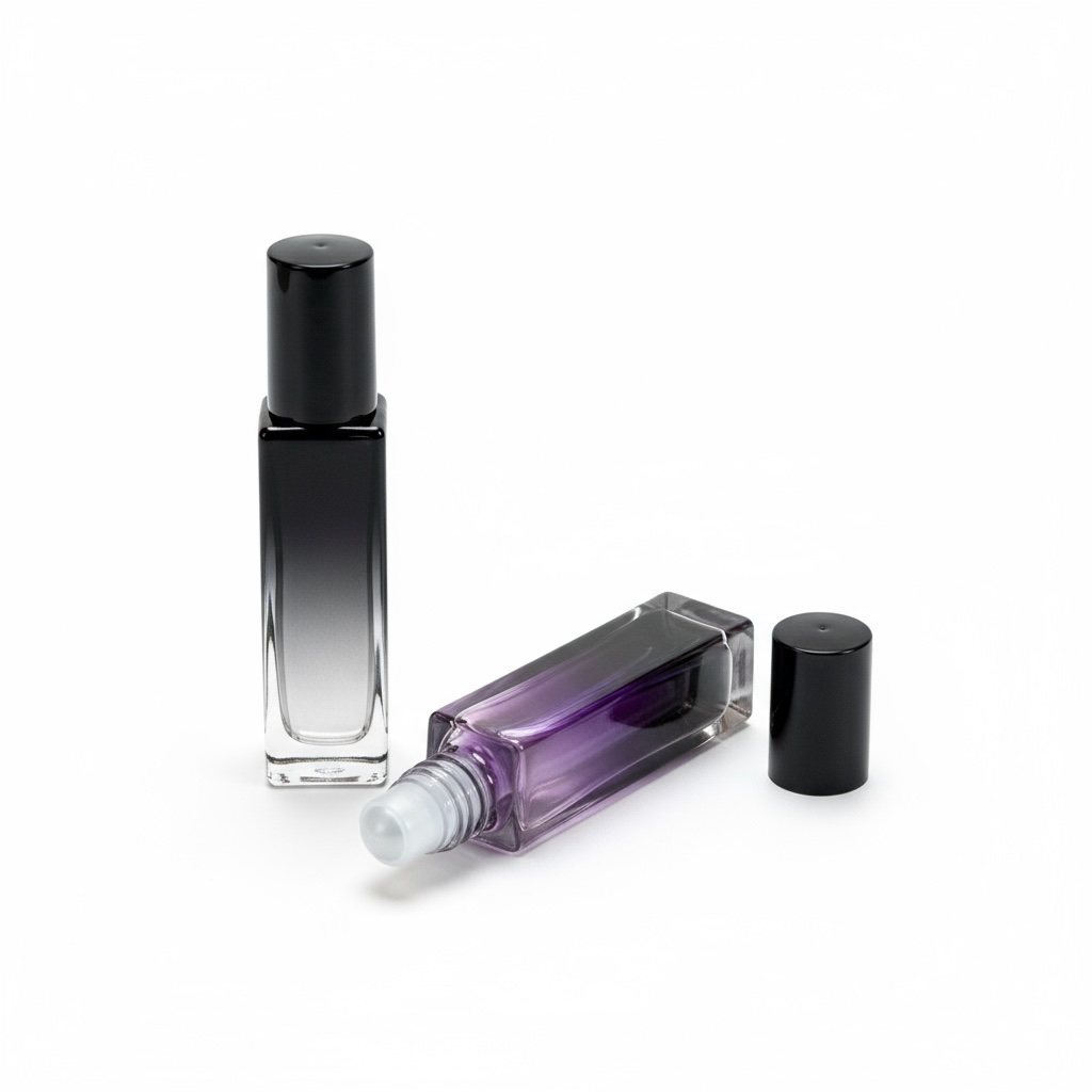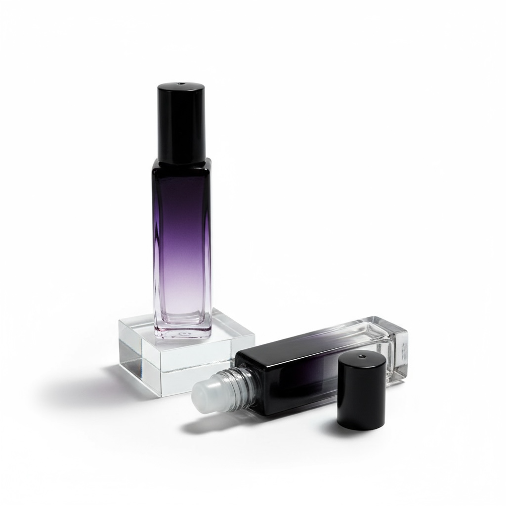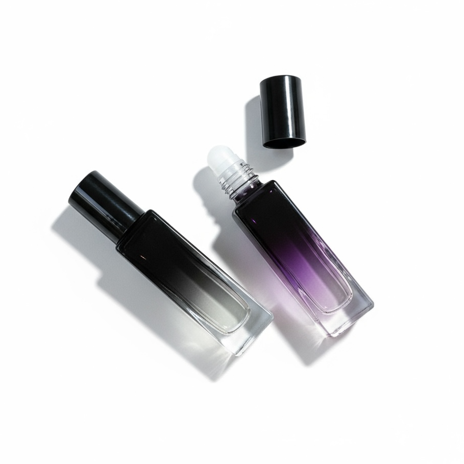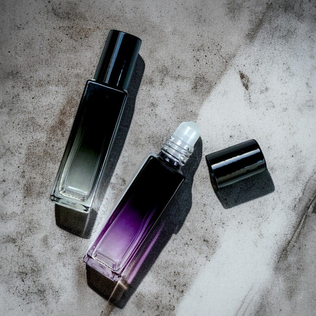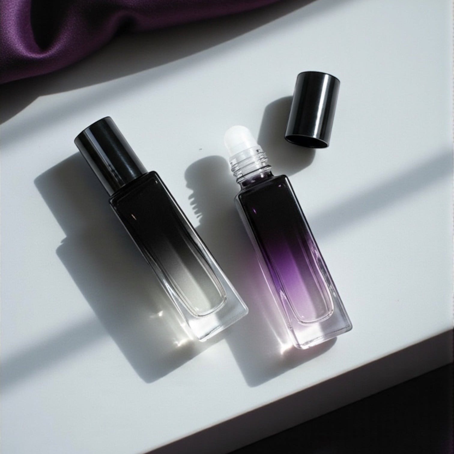 Die Roll On-Flaschen aus Glas mit Farverlauf in schwarz und violettt mit schwarzer Kappe und Glasroller sind perfekt zum Auftragen ätherischer Öle und Ölmischungen direkt auf die Haut - für zu Hause und praktisch auch für unterwegs, da die Roll Ons in jeder Handtasche Platz finden. Auch ideal als Präsent oder Mitbringsel, um lieben Menschen eine Freude zu bereiten oder einfach einen helfenden Alltagsbegleiter zu schenken.