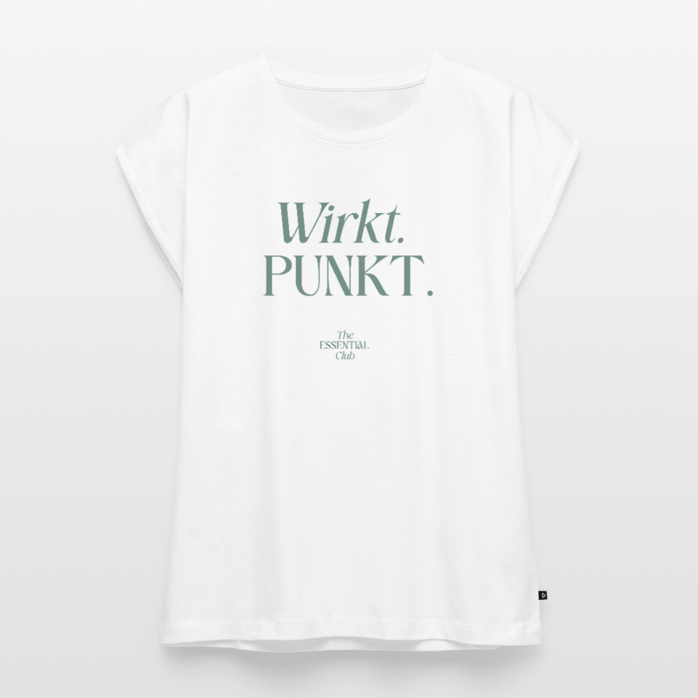 Frauen T-Shirt "Wirkt. Punkt." mit gerollten Ärmeln - Weiß