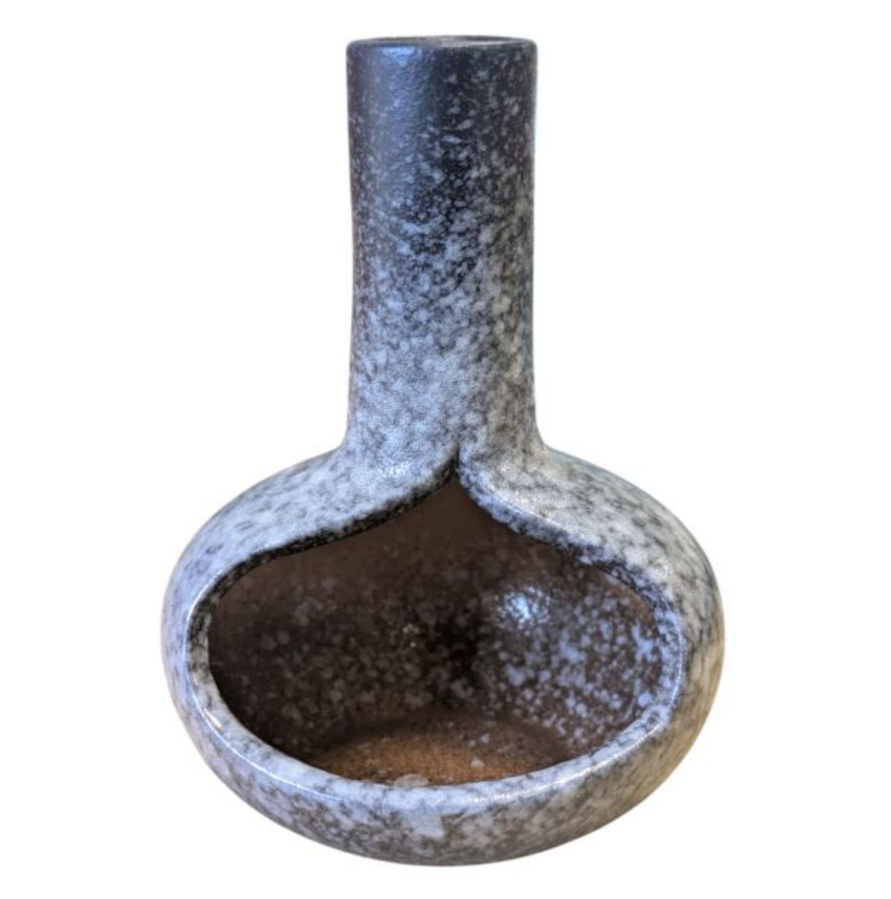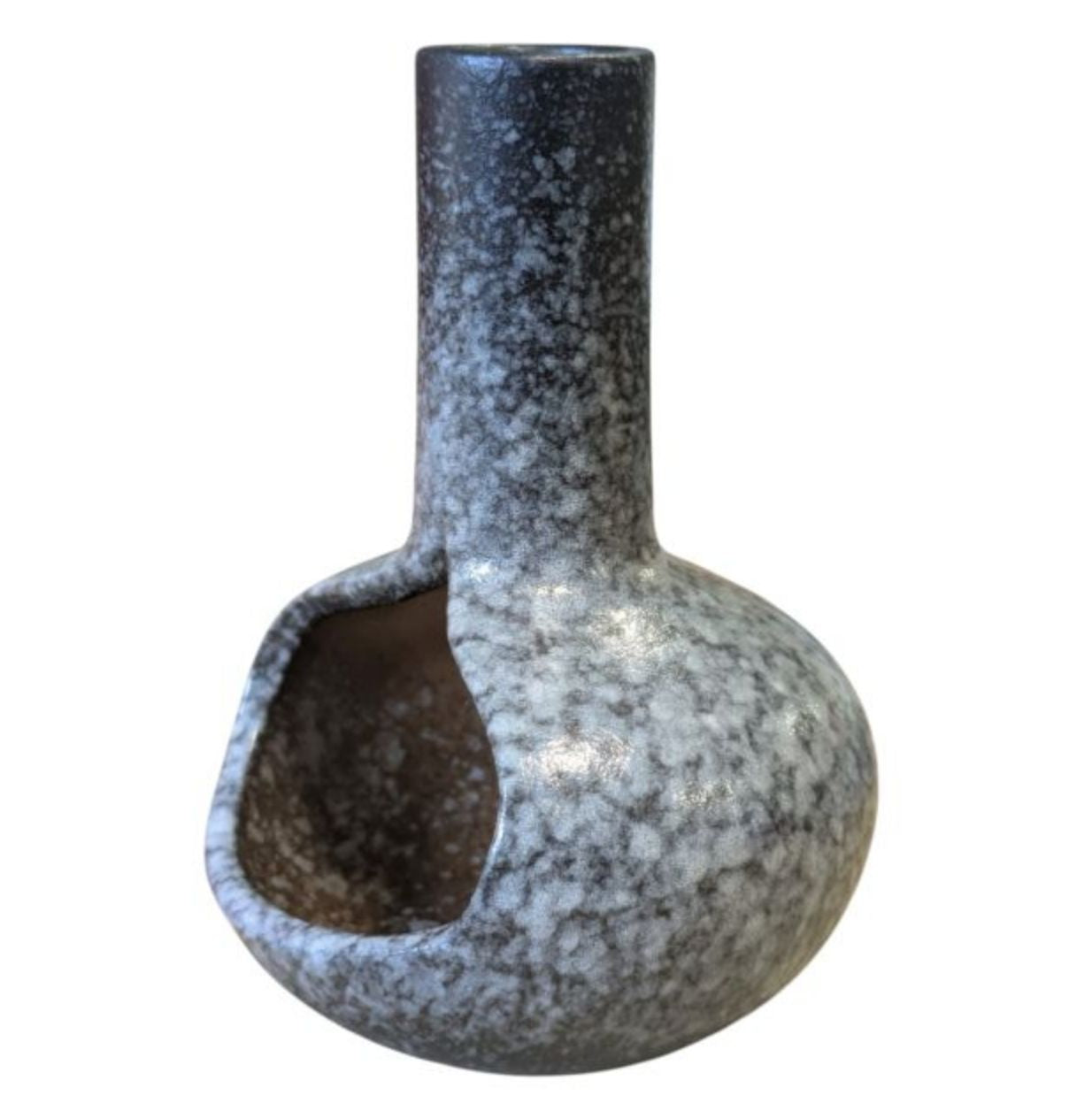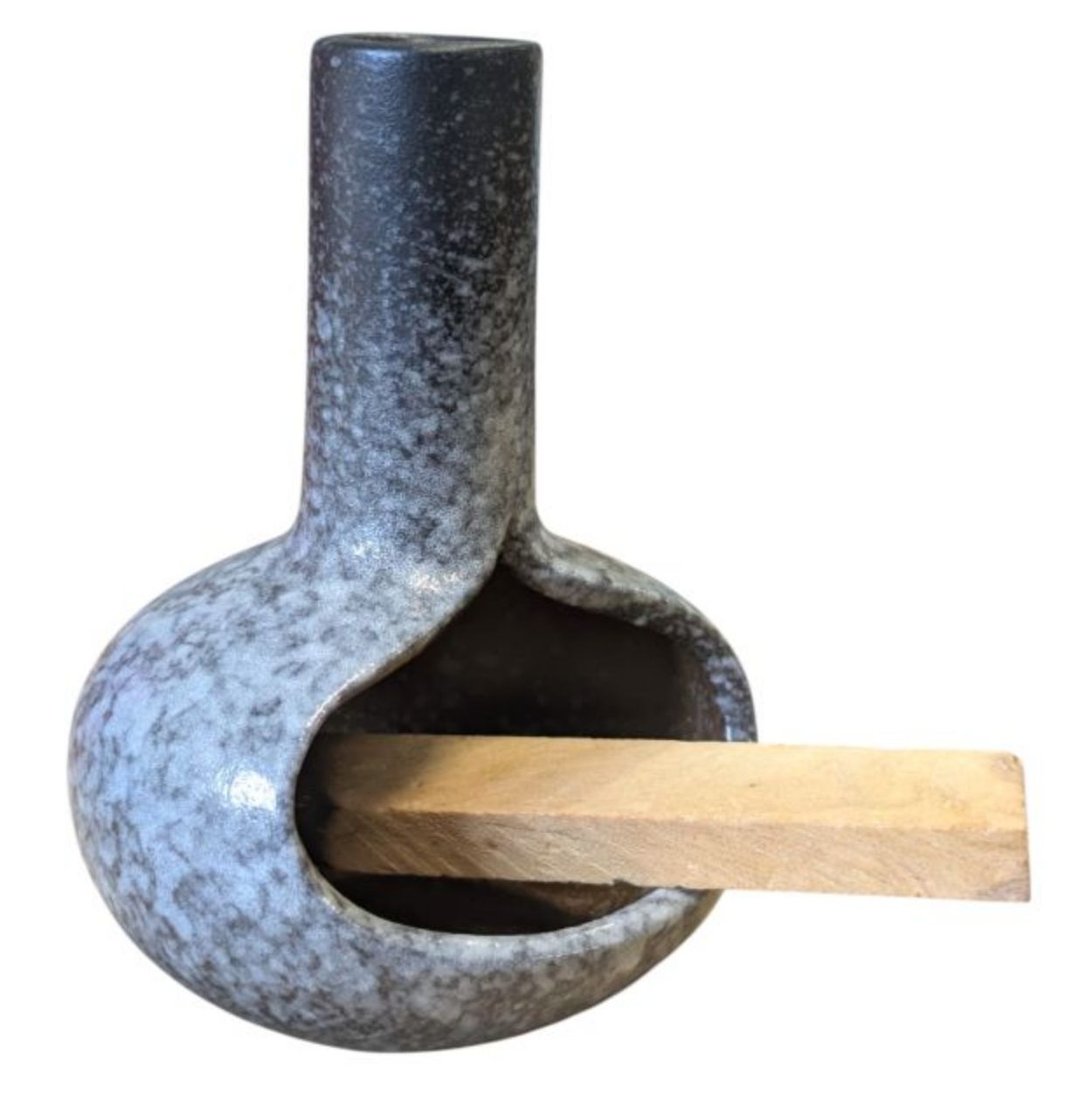Seine schwarze Oberfläche, die durch ein reaktives Keramikbrennverfahren weiße Nuancen offenbart, macht jedes Stück zu einem Unikat. Funktional und dekorativ zugleich, fügt sich dieser Brenner nahtlos in Meditationsräume, Wellnessbereiche oder Concept Stores ein.