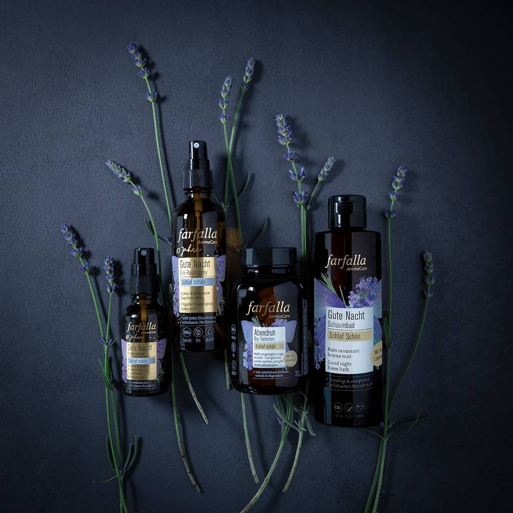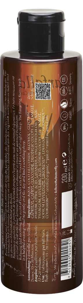 Entspannend und besänftigend, stimmt der Duft des Lavendels das Gemüt auf eine erholsame Nachtruhe ein. Die schmeichelnd-schaumige Badewonne ist ein hilfreiches Abendritual um den Tag sanft ausklingen zu lassen.